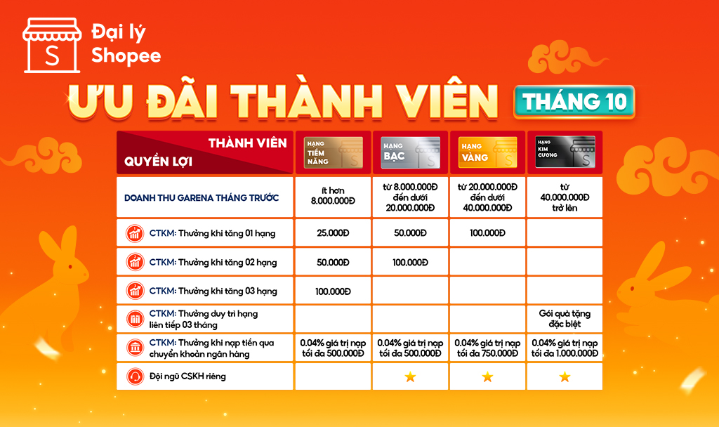 - Đại lý Shopee khuyến khích quý Đại lý thường xuyên theo dõi trang chủ để cập nhật các thông tin ưu đãi dành cho thành viên.