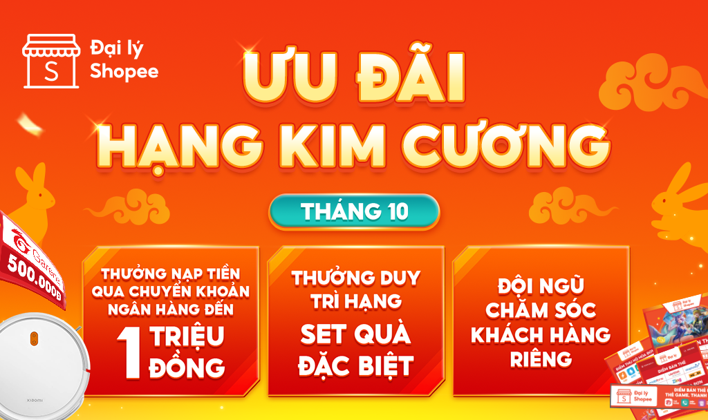 Tất cả Đại lý đạt Hạng Kim Cương liên tiếp trong tháng 10, 11 & 12/2025 | - Thẻ Garena với tổng trị giá 500.000Đ - Set Poster |