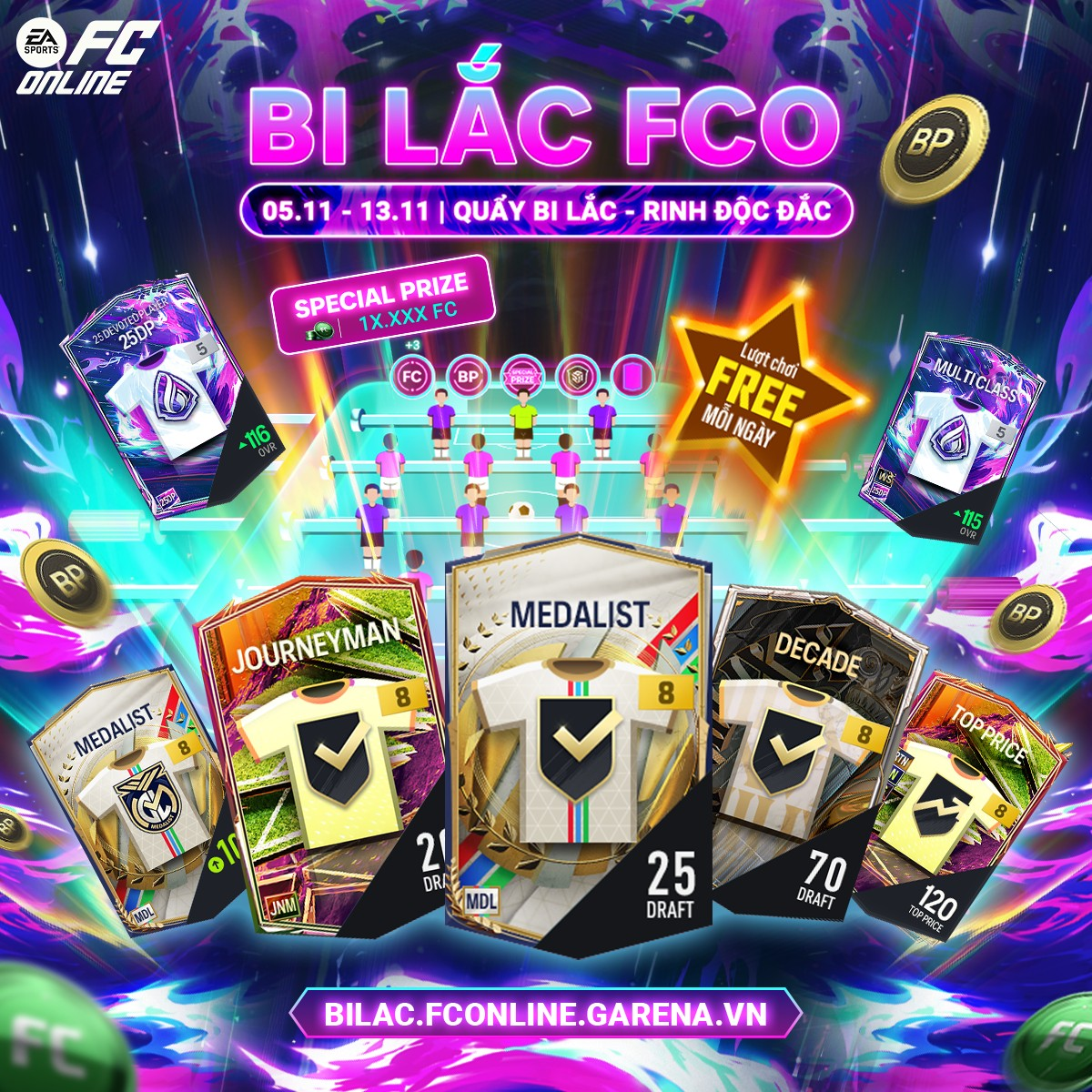 Bi Lắc FCO đã chính thức trở lại vào tháng 11, mang đến cho các HLV muôn vàn siêu phẩm mạ vàng cực kì hấp dẫn cùng hàng ngàn FC giá trị. Chi tiết xem tại đây