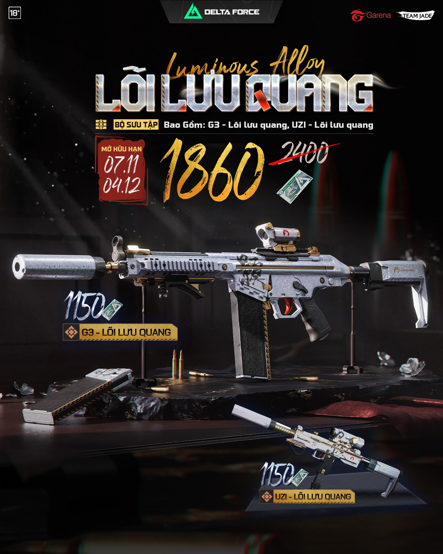 Sắm ngay UZI & G3 Lõi Lưu Quang với giá siêu hời, chỉ 1860 Vé Delta! Nhanh tay, vì thời gian MỞ BÁN HỮU HẠN, từ 07.11 - 04.12! Tham gia ngay hôm nay! Chi tiết xem tại đây
