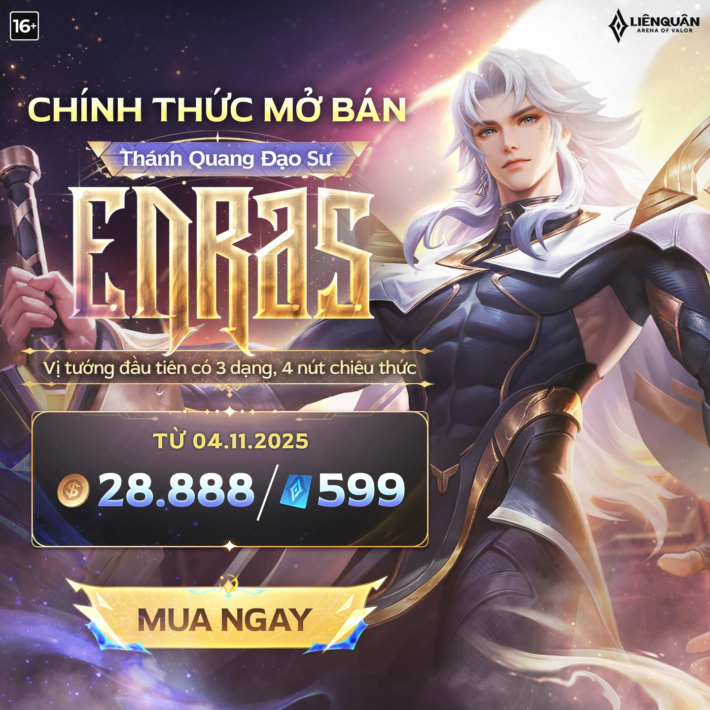 Từ hôm nay – 04.11, các Kiện Tướng đã có thể sở hữu Edras với mức giá: 28.888 vàng | 599 quân huy. Chi tiết xem tại đây
