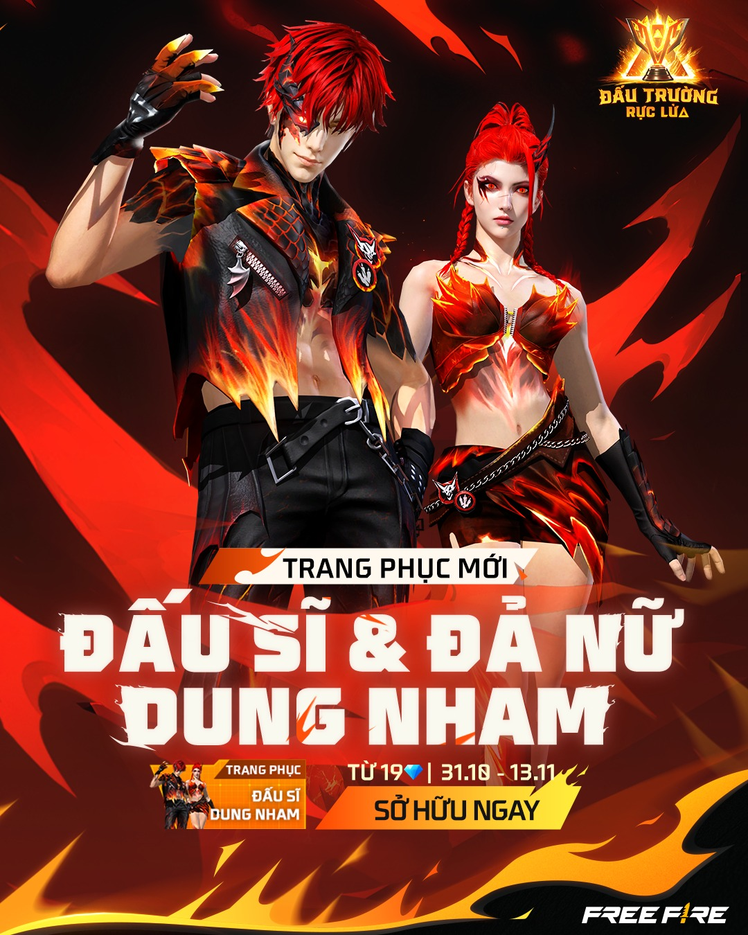 Ngoài hiệu ứng rực lửa đẹp mắt, cả hai trang phục Đấu Sĩ Dung Nham và Đả Nữ Dung Nham đều có thể thay đổi giữa hai ngoại hình cực chất. Chi tiết xem tại đây