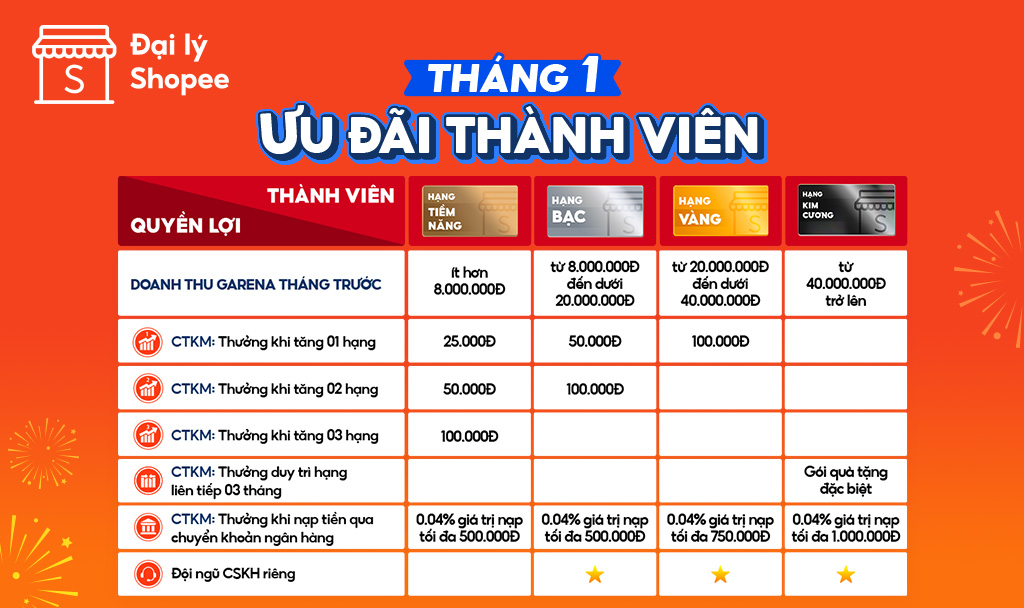 - Đại lý Shopee khuyến khích quý Đại lý thường xuyên theo dõi trang chủ để cập nhật các thông tin ưu đãi dành cho thành viên.