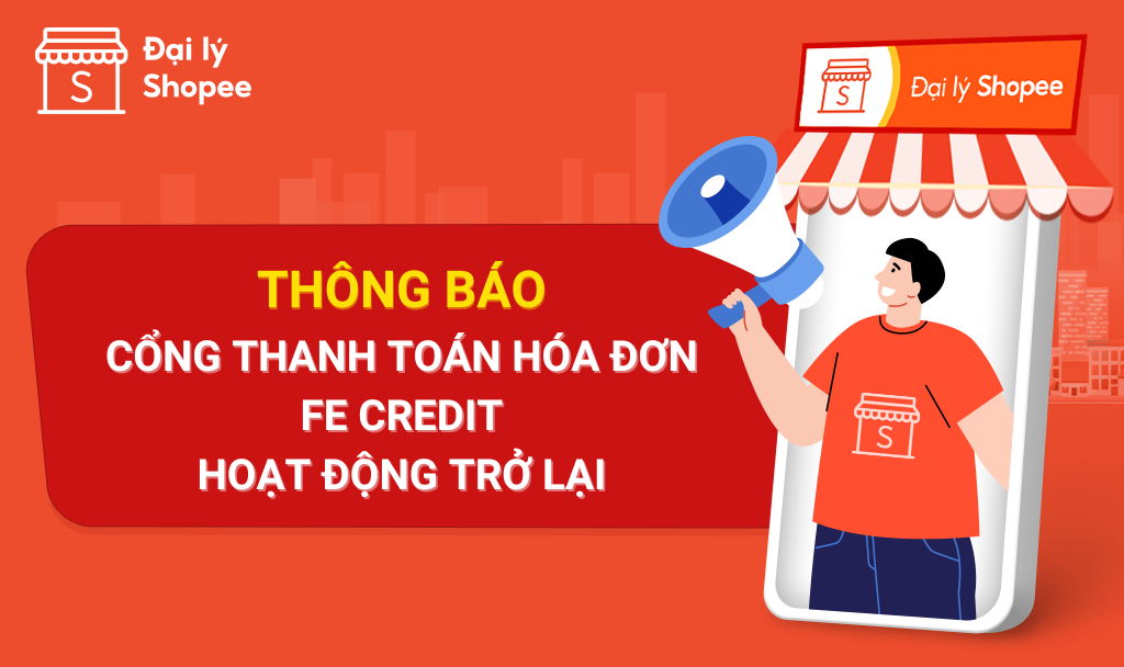 Với nhu cầu mang đến cho Quý Đại lý trải nghiệm thanh toán tốt hơn, Đại lý Shopee trân trọng thông báo: cổng thanh toán hóa đơn tài chính FE Credit chính thức được mở lại và hoạt động bình thường từ ngày 25/12/2025.