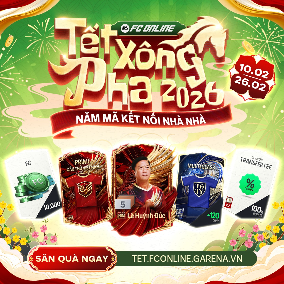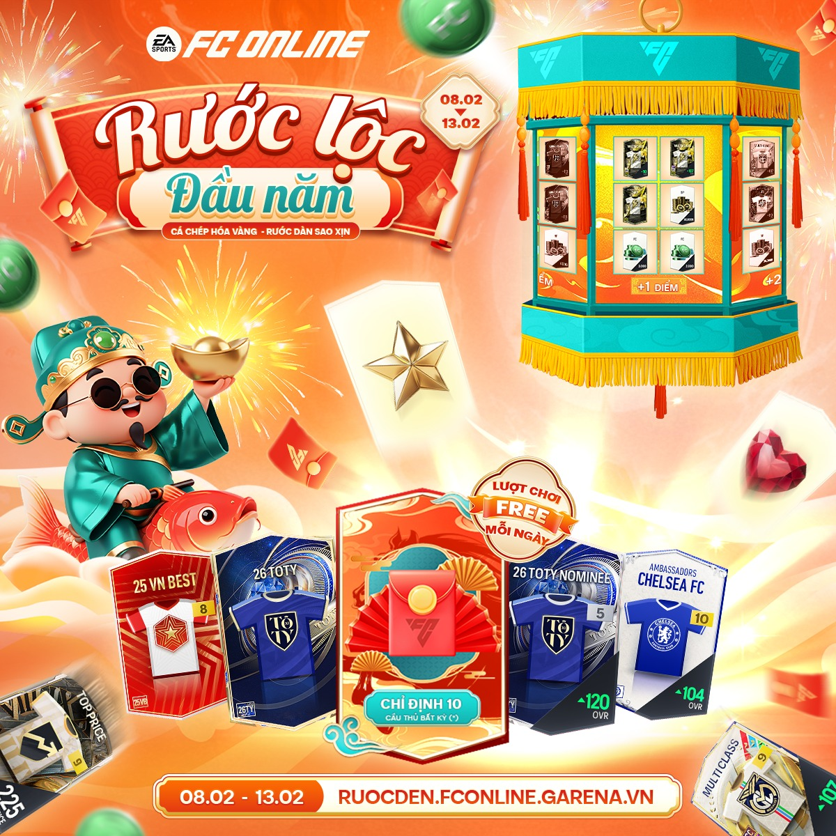 Hòa cùng bầu không khí nhộn nhịp của tết Bính Ngọ đang đến gần, FC Online chính thức ra mát sự kiện Rước Lộc Đầu Năm để cùng các HLV tham gia rước lộc, đón thêm hàng loạt siêu phẩm cực giá trị như dàn sao 26 Team Of The Year, MDL (+9), 24EP (+8) cùng nhiều siêu quà hấp dẫn khác! Chi tiết xem tại đây