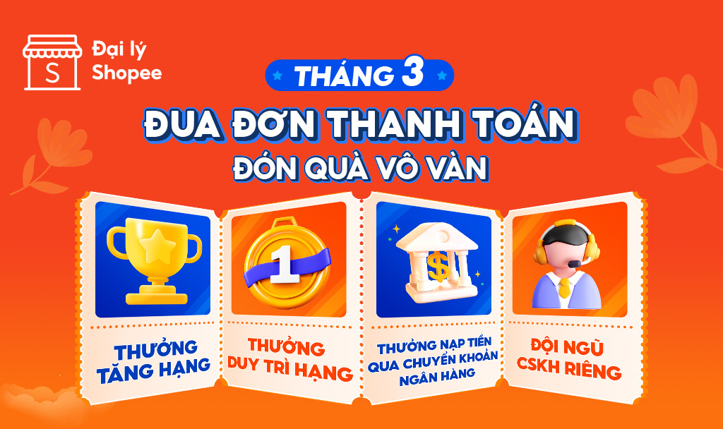 Tháng 03 trời vẫn còn Xuân, Quý Đại lý đã có những kế hoạch gì cho những sự kiện sắp tới chưa nào?! Những chương trình với những phần thưởng hấp dẫn trong tháng 03 dành tặng cho Đại lý đã chuẩn bị sẵn sàng. Hãy cùng theo chân Đại lý Shopee bứt phá hành trình chinh phục những chương trình "nóng bỏng" ngay thôi!