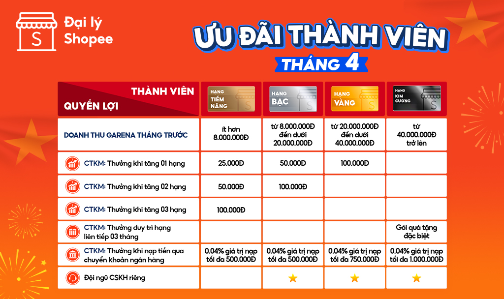 - Đại lý Shopee khuyến khích quý Đại lý thường xuyên theo dõi trang chủ để cập nhật các thông tin ưu đãi dành cho thành viên.